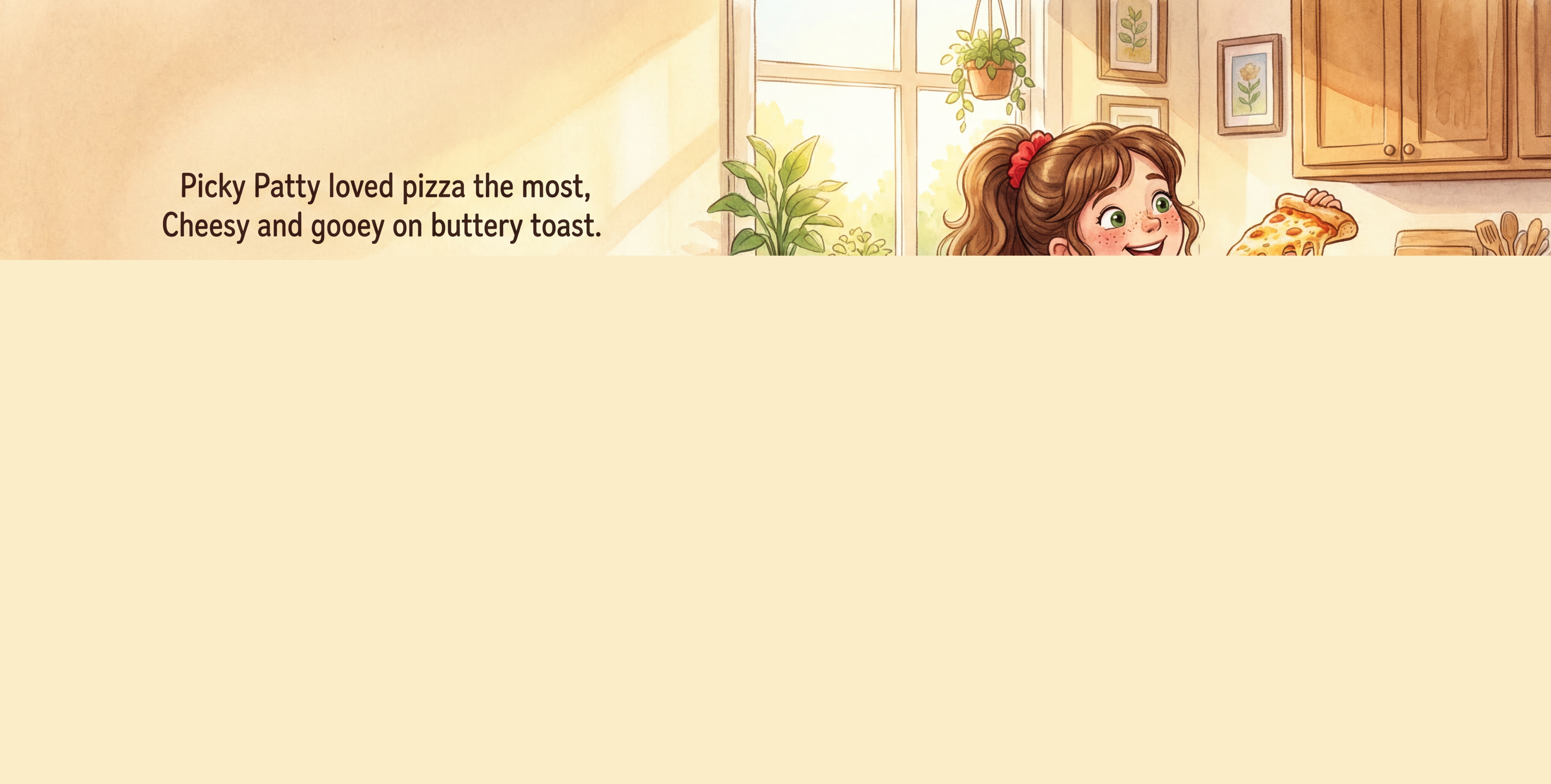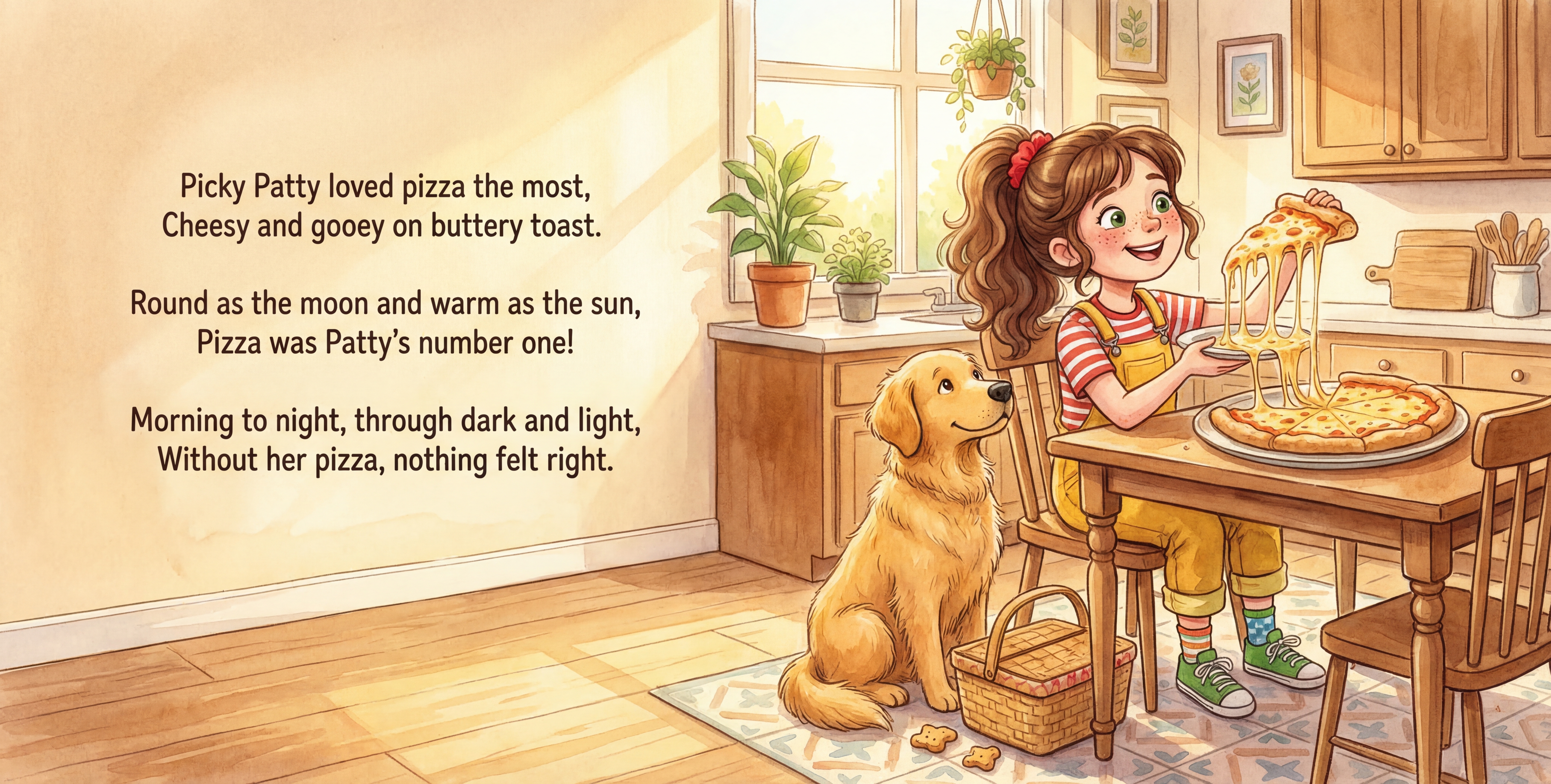 Meet Picky Patty. Patty loves pizza more than anything. Breakfast, lunch, dinner — pizza is always her favorite! But when Buddy the dog discovers a basket filled with crunchy surprises, Patty begins to wonder... Could something new taste just as good?
